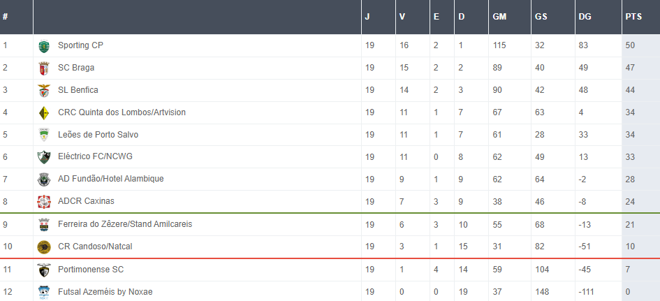 Турнірна таблиця чемпіонату Португалії після дев’ятнадцятого туру.