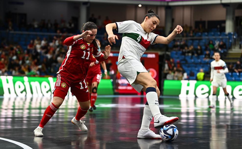 Власне кажучи, початок був обіцяючим. Принаймні, обидві команди обмінялися моментами, зокрема, Кота намагалась пробити у падінні через себе, але спроба не стала гольовою, хоча була ефектною. І вже за кілька миттєвостей Кота забила, проте… у власні ворота, намагаючись перервати атаку португальської збірної. Такий початок поєдинку трохи збив з пантелику господарок паркету, які, щоправда, намагалися все-таки грати на рівних. Окрім того, непогано грала у воротах Торма, що давало підопічним Тамаша Франка певну надію на те, що ще можна буде щось змінити. Однак, для того, щоб щось міняти, угорським футзалісткам потрібно було створювати моменти біля воріт Ана Катаріни, а з цим як раз були проблеми. Португалки встигали ще й у захисті грамотно грати, не даючи своїм візаві жодних шансів. Що стосується атаки, то за рахунок індивідуальної майстерності португальські футзалістки неодноразово створювали проблеми своїм суперницям. Однак, збільшити свою перевагу в рахунку їм вдалося лише у середині першого тайму. Це сталося після того, як арбітри, переглянувши відео епізоду в штрафному майданчику угорок, прийшли до висновку, що там був фол. Відповідно, був призначений пенальті, який реалізувала Карла Ванесса. А вже за кілька хвилин Сара Феррейра дальнім ударом збільшила перевагу своїй команди, після чого Тамаш Франк був змушений узяти тайм-аут. Однак, ця хвилинна перерва не допомогла господаркам майданчику. Вони нічого не могли протиставити португальським суперницям, які вже грали більш розкуто, і при цьому продовжували шукати шляхи до воріт Торми. Зрештою, за 57 секунд до кінця першої 20-хвилинки м’яч вчетверте опинився у воротах збірної Угорщини після вдалих індивідуальних дій від Карли Ванесси. 4:0 на користь збірної Португалії – таким був проміжний підсумок першого тайму гри за третє місце жіночого Євро-2023.